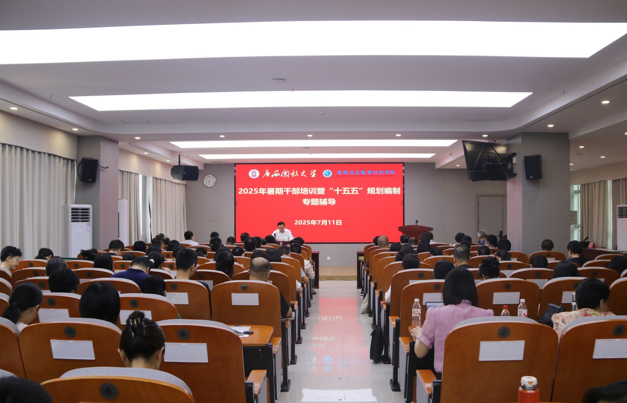 杨志鹏以《广西高校“十五五”规划编制专题辅导交流》为题,从发展规划编制一般性思路和要求、深刻领会教育强国重大战略部署要求、广西经济社会发展主要战略布局、如何用好政策合理提升高校基建设施水平、对pg娱乐电子游戏官网入口编制“十五五”专项规划的工作建议等方面作专题辅导报告,深入浅出地讲述了从战略层面到实践层面再到保障层面的规划编制方法,并结合学校实际提出了“十五五”规划编制的意见建议。