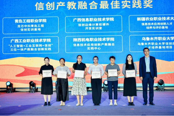 信息技术与自主创新产教融合共同体由龙芯中科技术股份有限公司、北京交通大学和深圳职业技术大学牵头建设,目前成员189家,其中高等院校91家。作为理事单位,学校始终围绕北斗人才培养目标,以北斗应用产业链人才需求为导向,整合智能产品开发与应用、物联网应用技术、导航与位置服务等相关专业,依托北斗导航和自主龙芯等新质生产力要素推进专业建设,持续深化产教融合,着力打造“北斗+”专业群。pg娱乐教师代表上台领奖,充分展示了pg娱乐在信息技术创新与产教融合方面的实践成果与创新能力。