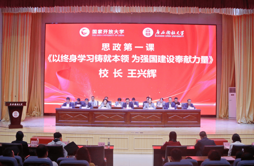 开放教育学院 余德富 报道 11月9日上午,pg娱乐举行开放教育2025年秋季学期新生开学典礼暨“思政第一课”。校长王兴辉出席典礼并致辞,为全体新生讲授“思政第一课”。党委副书记龙雪津,副校长李敏智、刘绍英、辛立章,纪委书记侯宗毅出席典礼。副校长黄远鸣主持典礼。