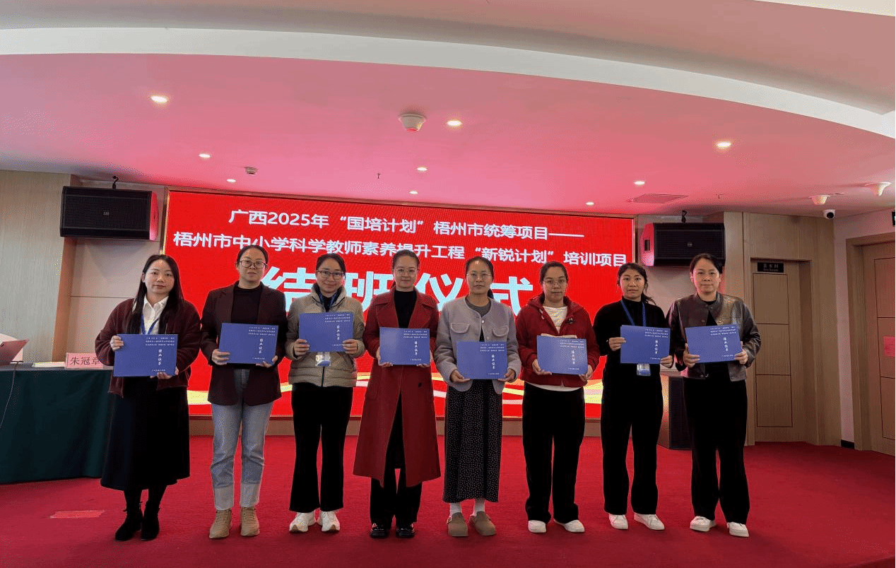 本次培训为期8天,旨在通过“集中培训+跟岗实践+返岗应用”的闭环培养模式,提升中小学科学教师跨学科整合与创新教学能力,打造一支具备创新精神、实践能力和科研素养的“新锐”科学教师队伍,为梧州市科学教育高质量发展以及“西江教育”品牌建设提供坚实师资支撑。学员们纷纷表示,通过系统性、沉浸式的学习体验,提升了教学设计、课程融合与教学科研能力,帮助大家掌握了素养导向课堂实施的本领,为下一步梧州市各中小学科学教育整体水平向更高层次迈进提供助力。