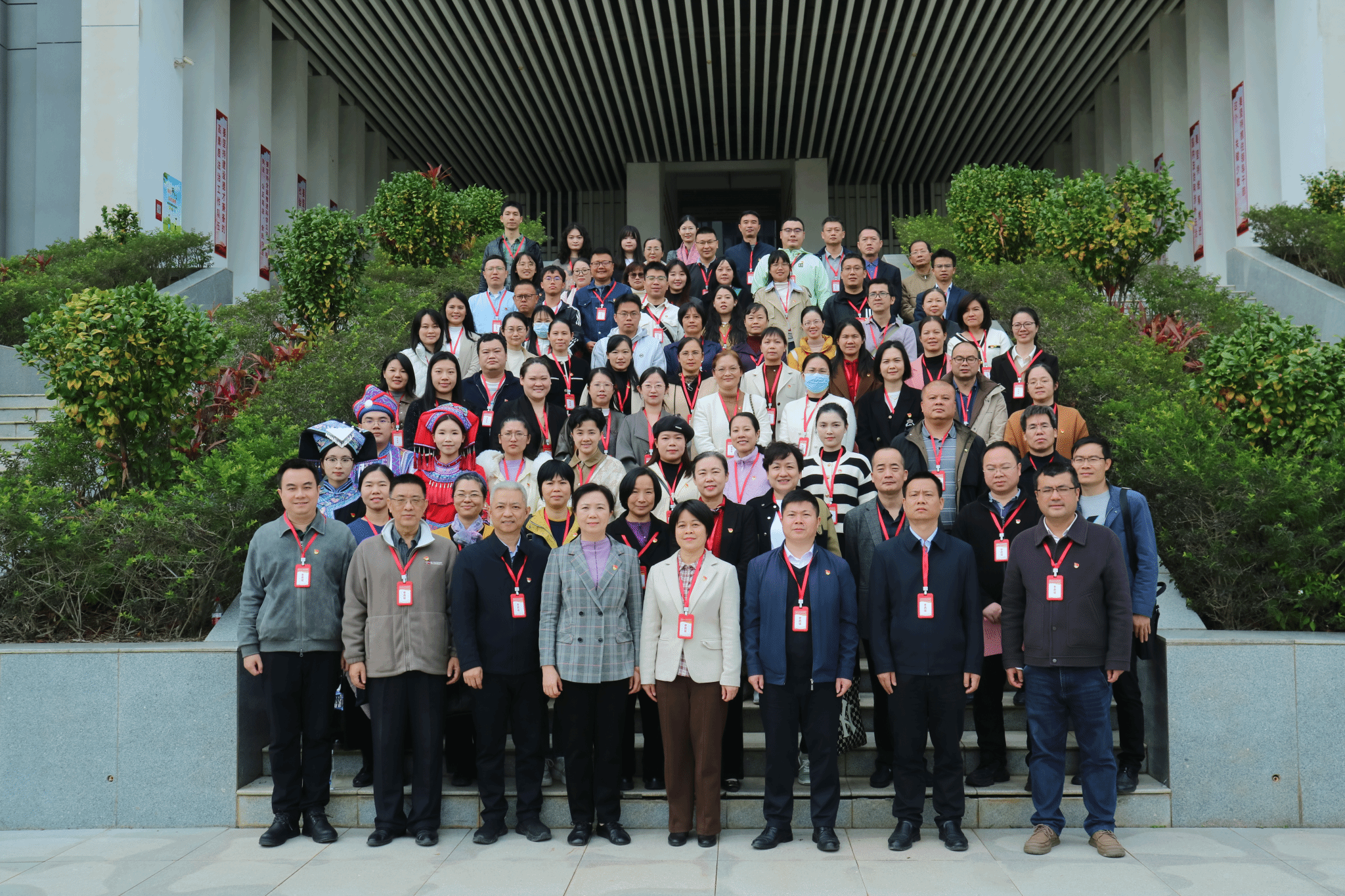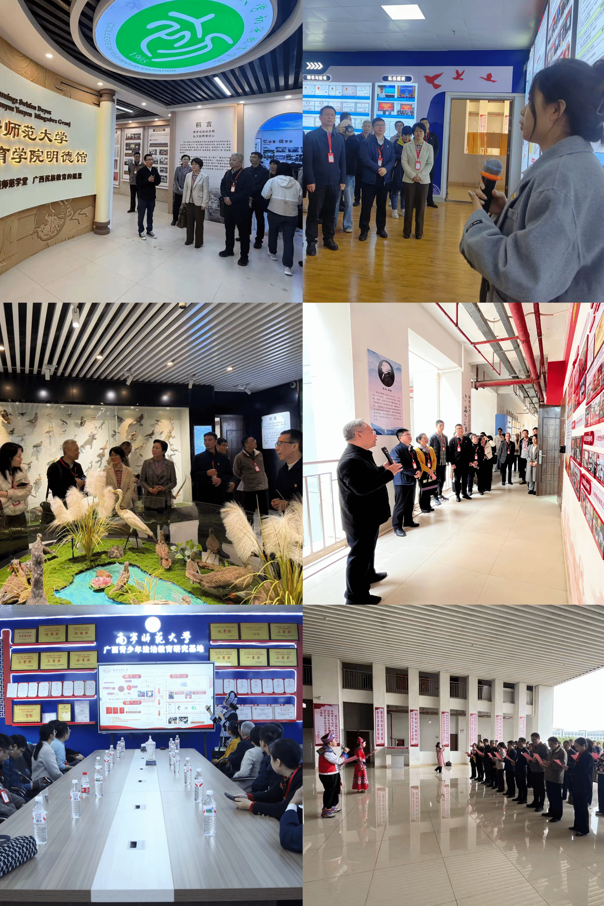 最后,全体人员集体参观了位于法学与社会学院的广西青少年法治教育研究基地,现场体验了金铜鼓山歌普法项目,进一步感受党建在文化传承与法治教育中的引领作用。