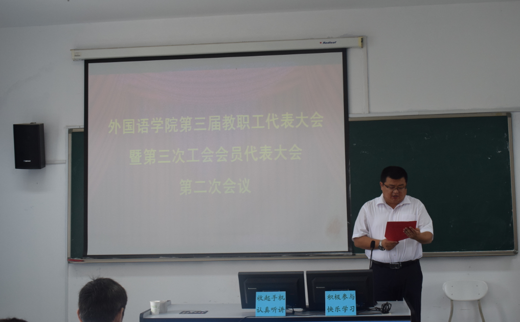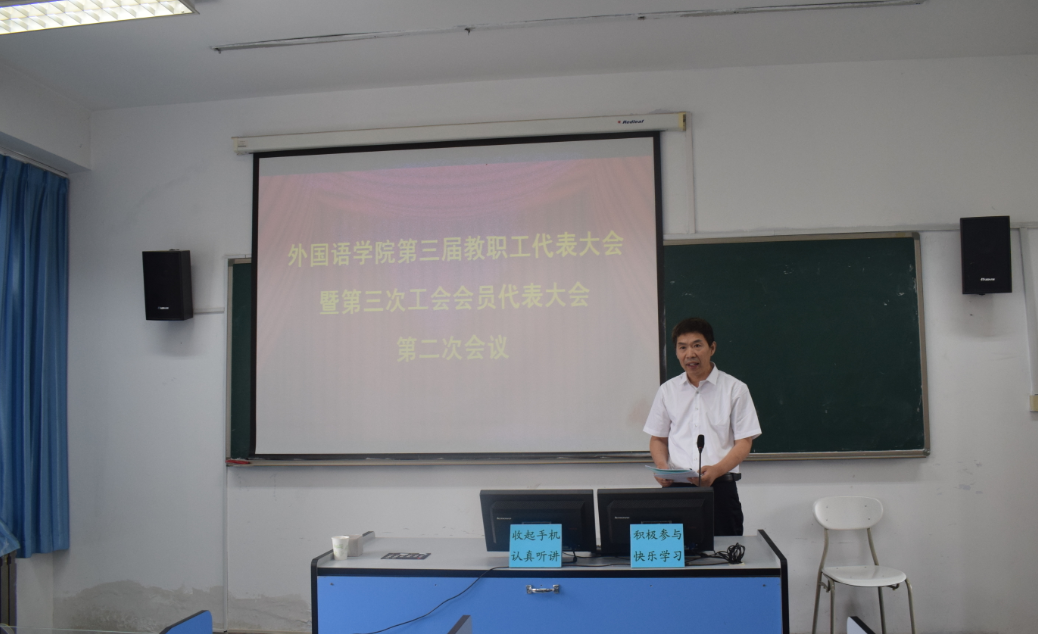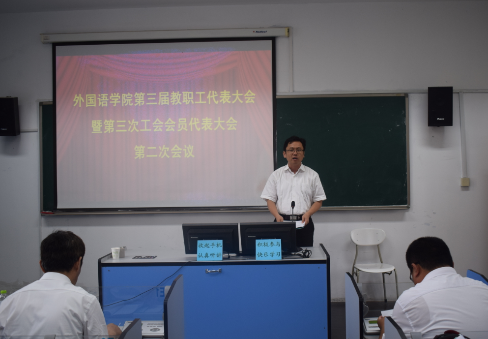 2019年7月17日,beat365英国官方网站第三届教职工代表大会暨第三次工会会员代表大会第二次会议在418语音室召开,应到代表60人,实到52人。会议由党总支副书记兼副院长宋飞主持。