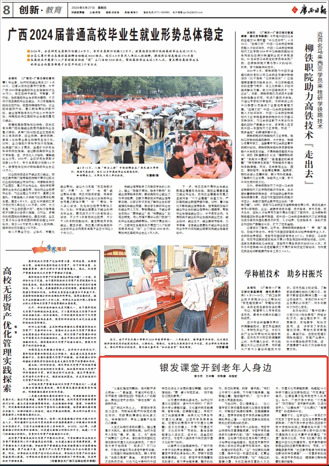 2024年6月27日,广西日报008版以《银发课堂开到老年人身边》为题报道pg娱乐老年教育情况,现将报道转载如下: