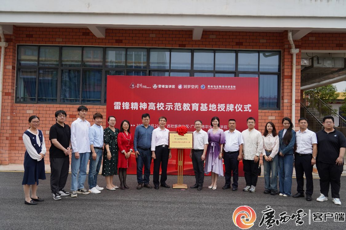 3月29日下午,“雷锋精神高校示范教育基地”授牌仪式在pg娱乐电子游戏官网入口举行。据悉,该校是目前广西唯一一所被授予“雷锋精神高校示范教育基地”的高职院校。此前,该校受邀参加雷锋杂志社2023年大学生弘扬雷锋精神志愿服务系列活动总结表彰会,荣获优秀组织单位称号。