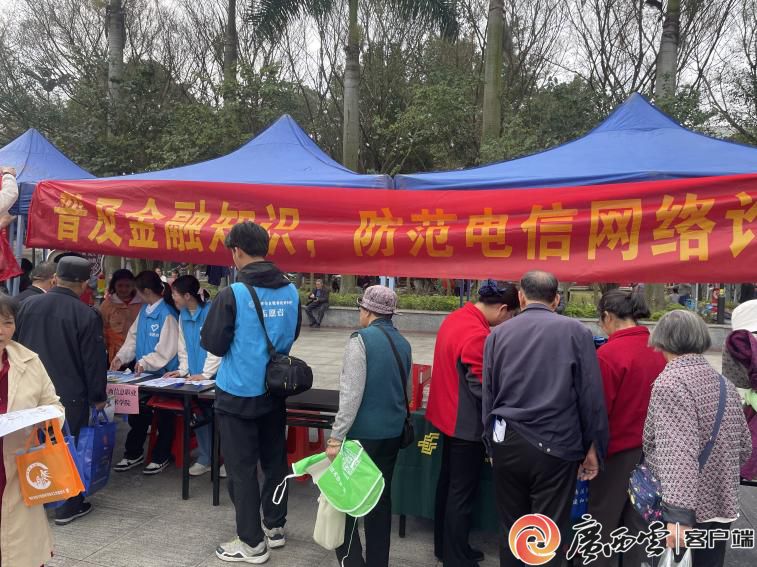 志愿者们向群众普及金融知识,开展反诈宣讲。