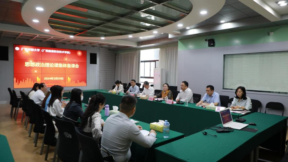 马克思主义学院 梁小娟报道 为提高思政课教师的教学能力,提升思政课教学效果和质量,切实做好2024春季学期思想政治理论课教学工作,3月26日上午,马克思主义学院在东宝校区远教大厦801会议室开展本学期第2次集体备课会暨教学改革与创新研讨会。pg娱乐电子游戏官网入口副校长刘绍英、辛立章,马克思主义学院名誉院长邓艳葵教授,广西水利电力职业技术学院江颉教授,pg娱乐电子游戏官网入口副院长邓明学出席会议。文理学院、马克思主义学院全体思政课教师参加了本次集体备课。会议由马克思主义学院名誉院长邓艳葵教授主持。