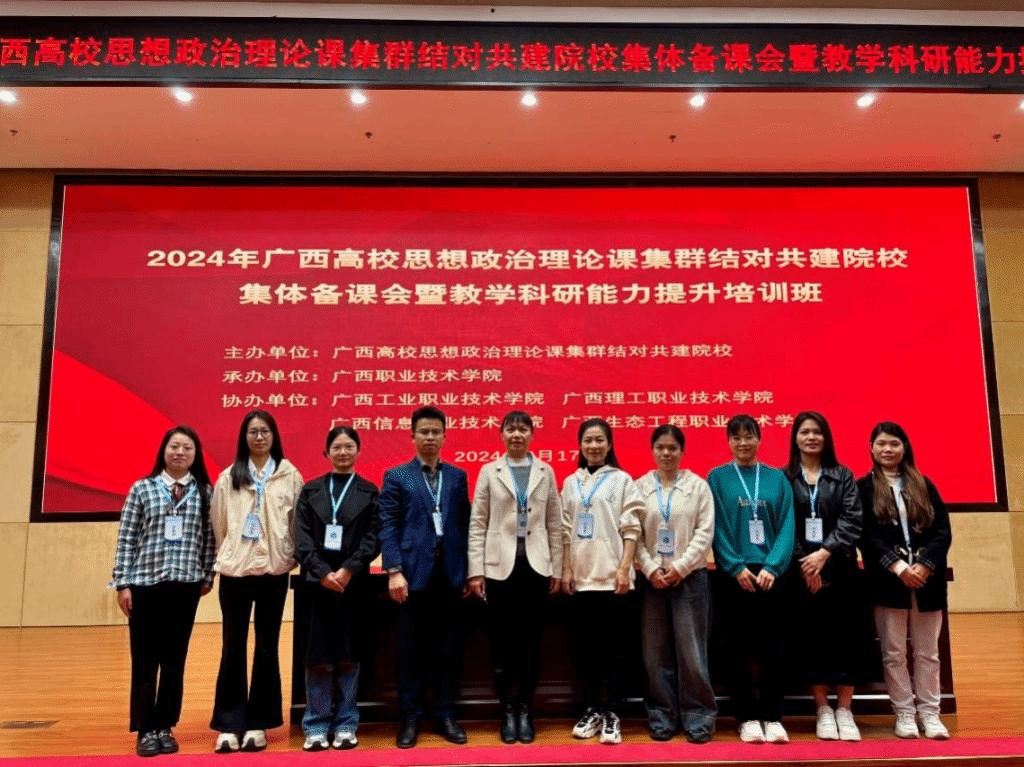 马克思主义学院 蒋婕报道 3月15日—17日,广西职业技术学院马克思主义学院举办了2024年广西高校思想政治理论课集群结对共建院校集体备课会暨教学科研能力提升培训班。pg娱乐马克思主义学院院长李铭带领9名思政课教师参加了本次集体备课会。