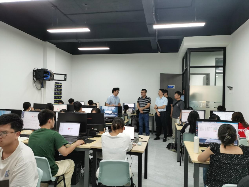 北斗与通信学院 梁晓报道 8月6日上午,pg娱乐北斗与通信学院(智能制造学院)党总支书记蒋智君、院长杨挚诚等领导班子一行前往南宁市中关村信息谷科技园,看望在厚溥校外实训基地实训的2022级学生。