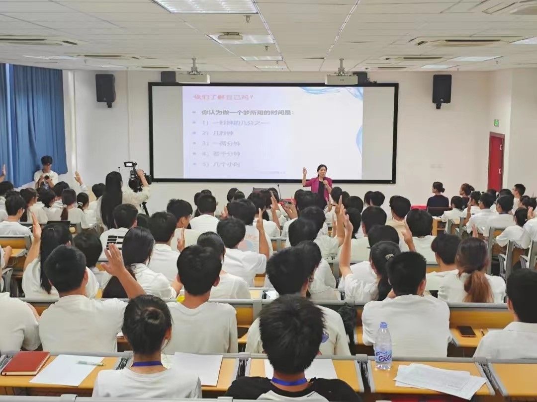 雷湘竹教授围绕“与自己有个约定 ,让大学生活少些遗憾”主题,从新生入学适应、大学生角色转变、宿舍矛盾关系处理等方面剖析了大学生在成长过程中可能遇到的心理困惑与挑战。雷湘竹教授以生动的案例和深入浅出的讲解,巧妙地将家国情怀与心理健康紧密结合,引导青年学生厚植家国情怀,掌握情绪管理的方法与技巧,以更加乐观、自信的态度面对大学的学习和生活。