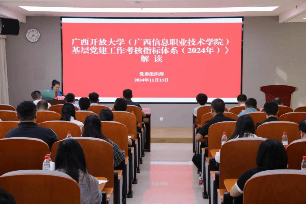会上,党委组织部副部长何艳珍对学校2024年基层党建工作考核指标体系进行了详细解读,并结合开展基层党建工作实务培训。“绩效管理系统”平台负责人现场培训并演示了系统操作流程,并进行了现场答疑解惑。