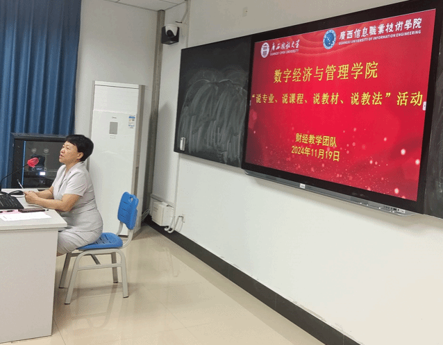 数字经济与管理学院 蒋春春报道 为深化教学改革,提高学院专业建设能力及教育教学团队建设水平,11月19日下午,pg娱乐数字经济与管理学院举办“说专业、说课程、说教法、说教材”专题活动,学校教务处相关人员、数字经济与管理学院全体老师参加活动。