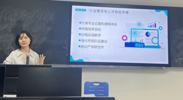 在“说专业”环节,各专业负责人围绕本专业的培养目标、课程设置、实践教学和就业前景等方面进行了详细介绍,明晰了团队的教学目标。在“说课程”环节,老师们分别就各自负责的课程进行了深入介绍。从教学目标、教学内容和教学方法到实践经验和技巧作了分享。在“说教法”环节,更是亮点频现,教师们展示了创新教学方法和手段,充分运用信息技术,结合案例、项目驱动、翻转课堂等多种形式,激发学生的学习兴趣和积极性,有效提高了教学效果和学习成果。在“说教材”环节,教师们对选用教材进行了介绍和评价,分析其内容特点、结构体系和适用对象等情况,部分教师分享了根据专业、课程教学和学生需求选用教材的思路。