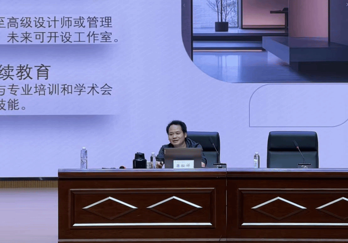 本次讲座邀请到了蒋松祥老师为大家作经验分享,他围绕室内设计职业路径、经典装修案例分享、激发学习内驱力以及当前装修行业分析等四大模块,深入浅出地讲授了室内设计领域的广阔前景与潜在挑战。