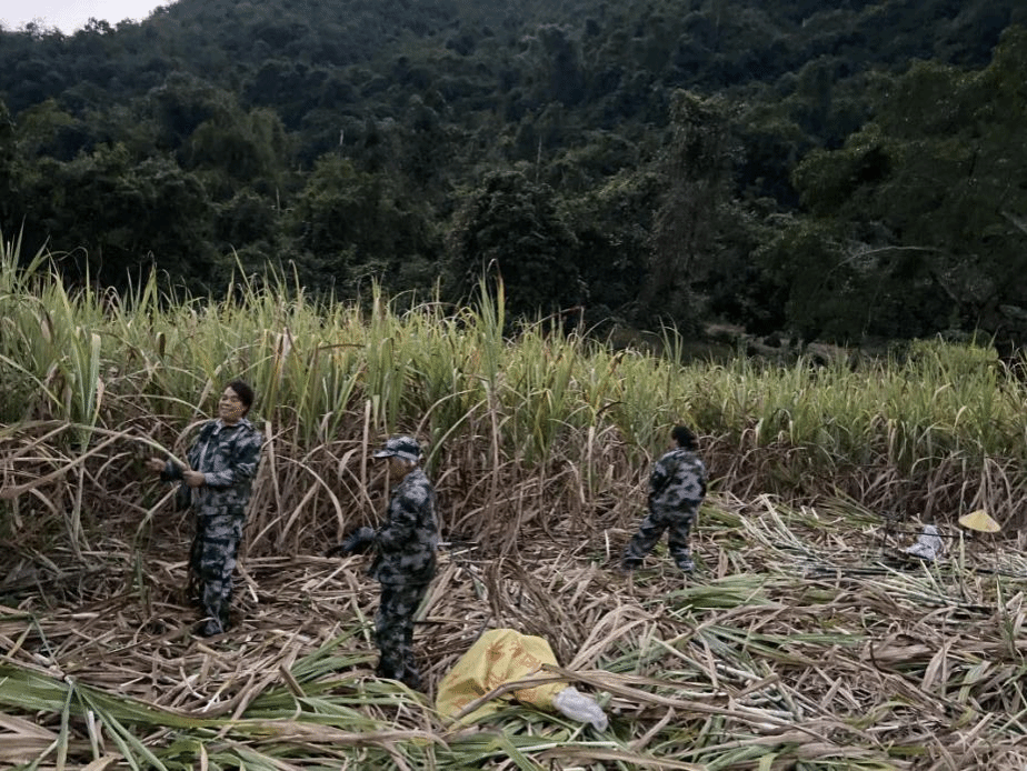 恩城乡如龙村驻村第一书记李有光对学院的捐赠表示了衷心的感谢,第一时间将军训服发到了村民手中。这批捐赠的军训服及时有效解决了村民砍甘蔗的劳动防护问题。
