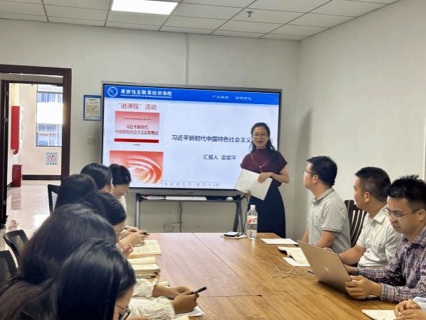 马克思主义学院 文红敏报道 为落实立德树人根本任务,进一步提升思政课教学质量,马克思主义学院于11月19日举办了“说课程、说教法、说教材”专题活动,活动旨在深化课程内涵,共谋教学发展,通过教师之间的交流与学习,提高教育教学质量,充分发挥思政课立德树人的关键课程作用。学院全体教职工参加了本次活动。