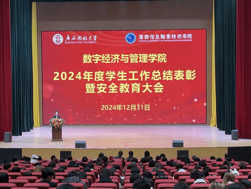 数字经济与管理学院 欧淑玲报道 为表彰先进、树立典型,进一步激励学生追求卓越、奋发作为,推动学院学生工作再创佳绩,2024年12月31日下午,数字经济与管理学院在学生活动中心召开2024年度学生工作总结表彰暨安全教育大会。pg娱乐电子游戏官网入口副院长,数字经济与管理学院党总支书记、院长李国助,数字经济与管理学院党总支副书记顾玉俊、副院长白雪出席大会,学院全体教职工、班主任、辅导员,2023级、2024级学生参加会议。会议由学院学生管理办公室副主任、分团委副书记欧淑玲主持。