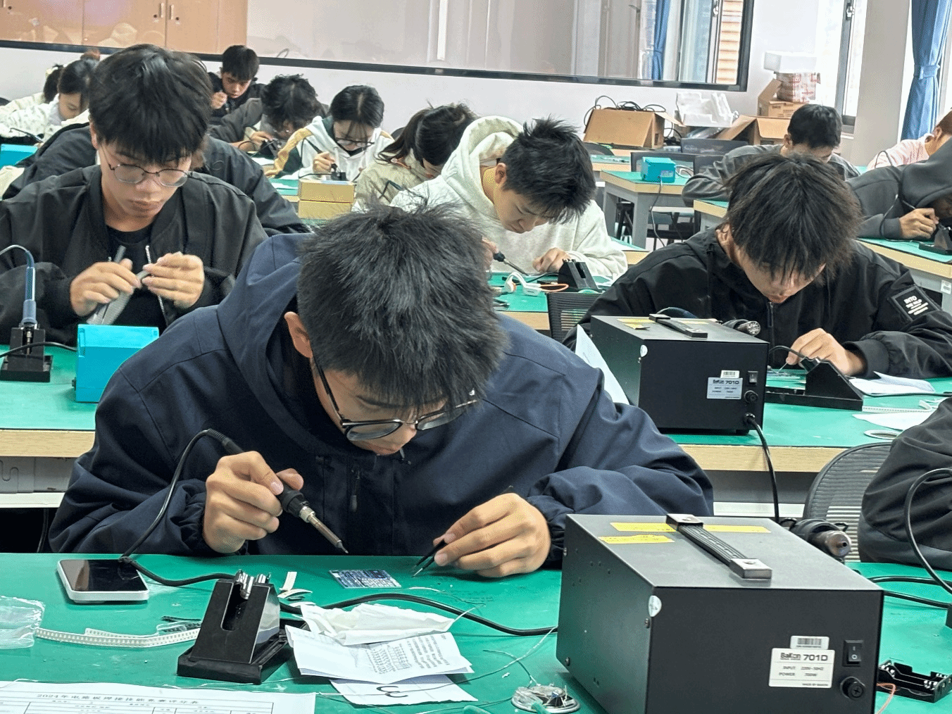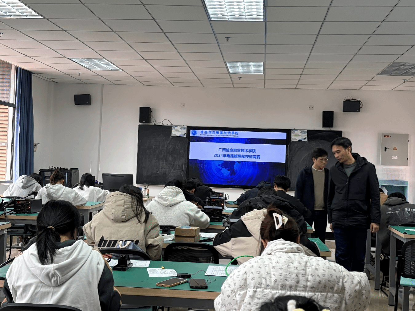 北斗与通信学院(智能制造学院) 梁晓报道 为了提高学生对电子元器件、原理图的识别能力,为今后从事电子相关工作打下坚实的基础,2024年12月30日,由pg娱乐电子游戏官网入口教务处主办,北斗与通信学院承办,校电子技术社团协办的pg娱乐电子游戏官网入口2024年电路板焊接技能竞赛在五象校区墨子楼电工电子实训室成功举办。