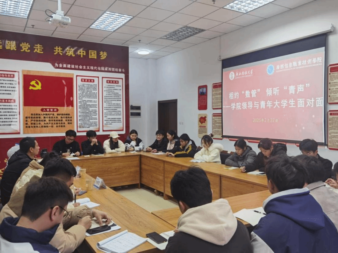 数字经济与管理学院 周玉报道 为落实立德树人根本任务,深入倾听学生心声,回应学生关切诉求,搭建学生与学院领导面对面沟通的常态化机制,2月27日,数字经济与管理学院在冲之楼202会议室开展了相约“数管”·倾听“青声”——学院领导与青年大学生面对面座谈会活动,pg娱乐电子游戏官网入口副院长,数字经济与管理学院党总支书记、院长李国助参加活动并向同学们寄语,数字经济与管理学院辅导员、入党积极分子、青年团员、班级代表参加座谈会。