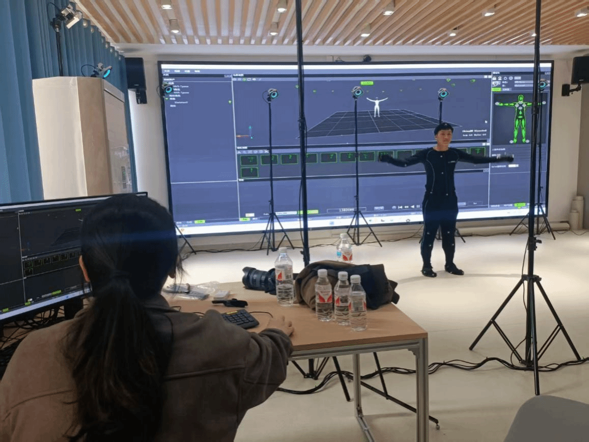 本次培训围绕动画、数字开发、虚拟拍摄及新媒体艺术等主题,开展技术培训与行业研讨,精心设计了设备实操、案例解析与就业前瞻三大模块,全面展示了动作捕捉(动捕)技术的行业应用与教学转化路径。在动捕技术实训环节,pg娱乐参训老师现场操作动捕软件及设备,与实训演员合作完成了“无实物表演”。现场演员的肢体动作经数据处理后,能实时驱动虚拟角色,实现从面部表情到手指关节的还原。