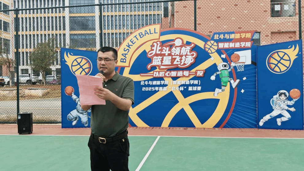 北斗与通信学院(智能制造学院) 陈绍龙 罗富铧报道 青春激扬,热血沸腾。为凝聚团结精神,增强学生体魄,营造积极向上的校园文化氛围,4月8日,北斗与通信学院(智能制造学院)首届“北斗杯”篮球赛开幕式在室外篮球场举行。学生工作部、校团委、计算机与人工智能学院、数字艺术与传媒学院、数字经济与管理学院、通识教育学院等部门和二级学院领导受邀参加活动。