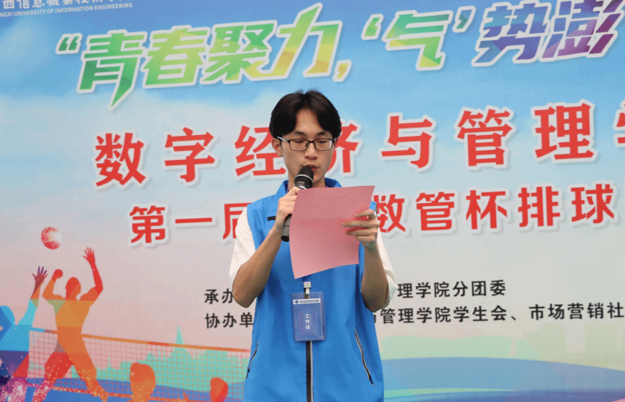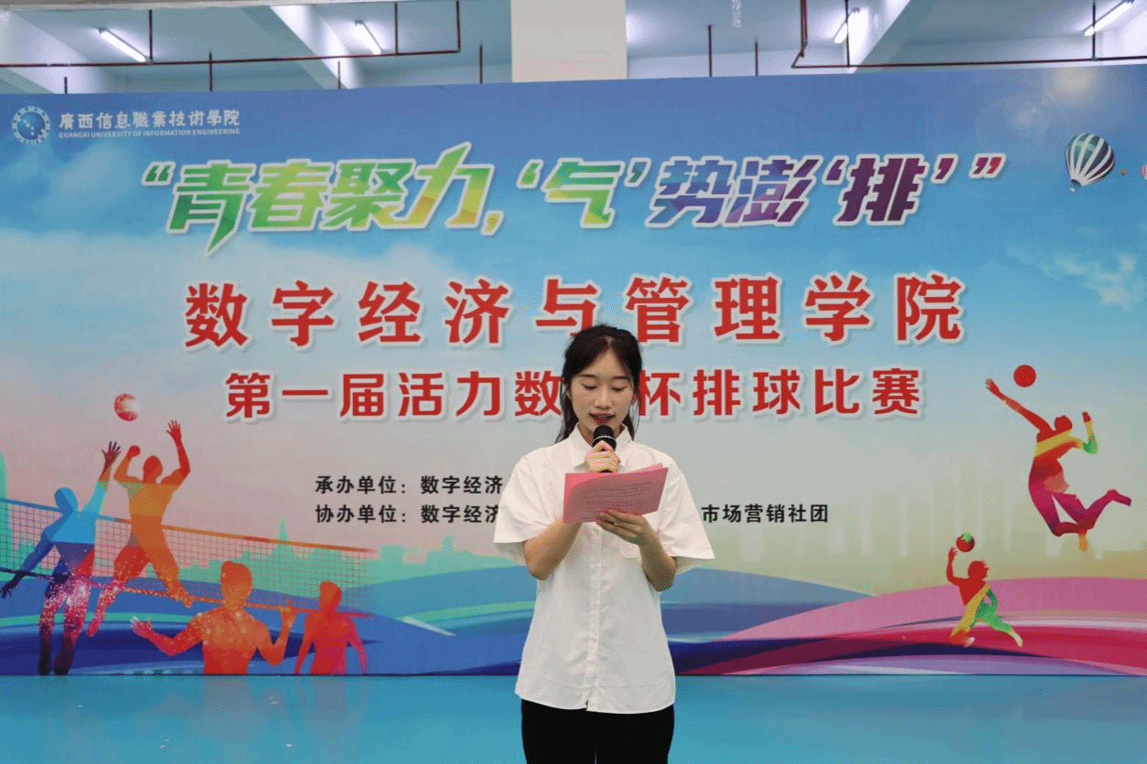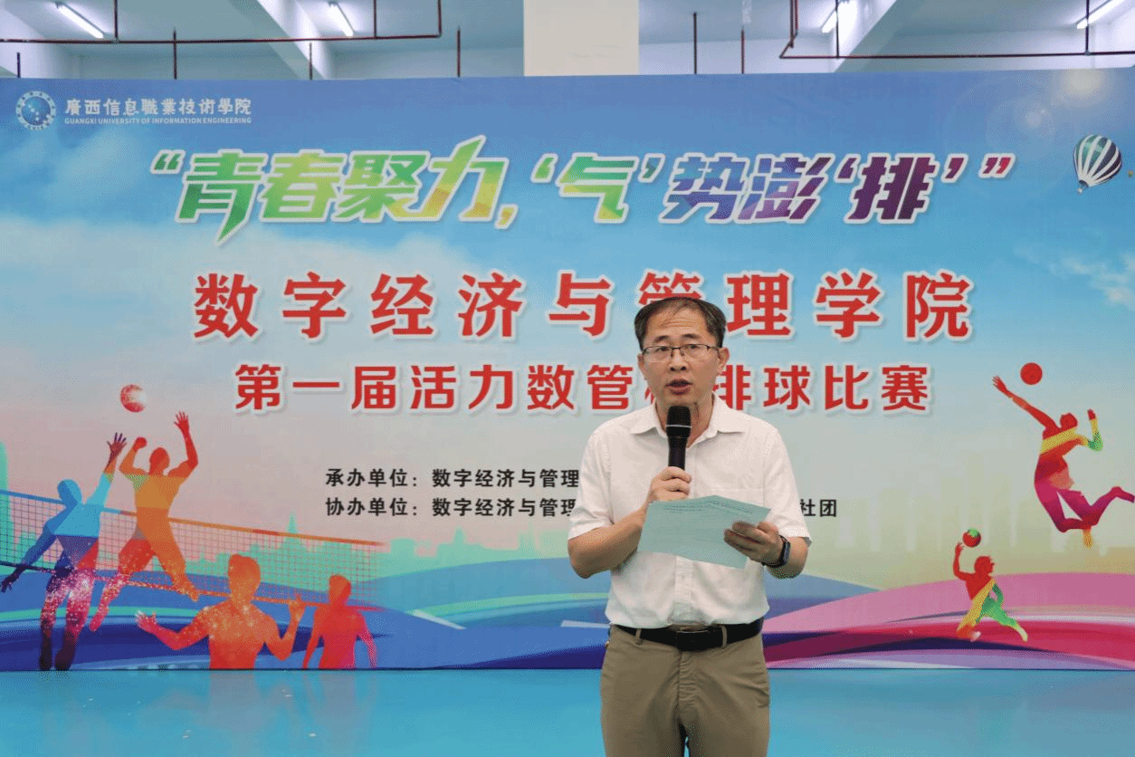 数字经济与管理学院 欧淑玲报道 5月15日下午,数字经济与管理学院“青春聚力,‘气’势澎‘排’”第一届活力数管杯排球比赛开幕式在学校体育馆三楼举行。pg娱乐电子游戏官网入口副院长、学生工作部部长陈广杰出席开幕式并致辞,北斗与通信学院(智能制造学院)、计算机与人工智能学院、数字艺术与传媒学院等学院负责人受邀参加活动。学院党总支副书记顾玉俊作动员讲话。