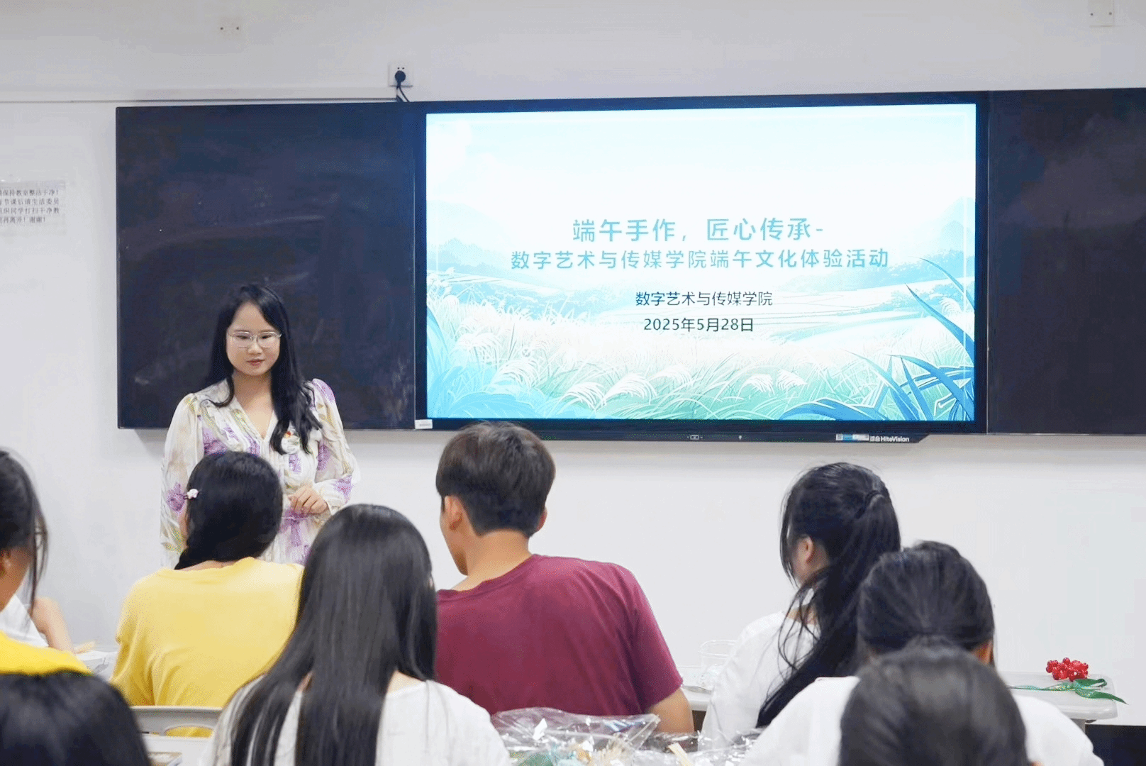 活动以一场沉浸式文化讲堂拉开帷幕。数艺学院教师谢韵向同学们介绍端午节的由来、习俗及文化内涵,结合端午节的历史背景,讲解了中华传统文化保护政策,强调新时代背景下要更加深刻认识中华优秀传统文化的当代价值。