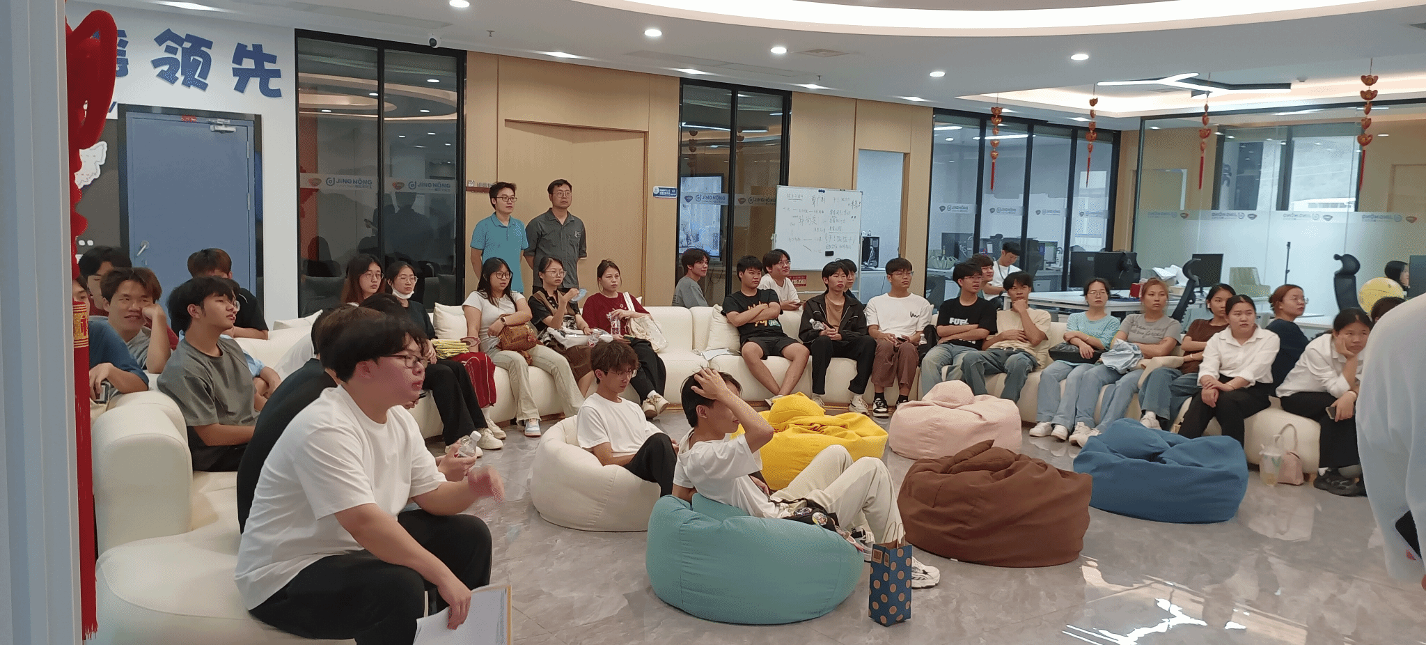 6月20日,李舟带队,教师王浩舟、陈宏毅、陆冬妮和38名影视动画、影视多媒体技术、数字媒体艺术设计三个传媒类专业学生,分别走访南宁鸿仁文化传媒有限公司和南宁鲸红文化娱乐有限公司。鸿仁传媒是语音主播领域的专业机构,公司负责人向师生们介绍了企业发展历程、企业文化、薪资待遇等关键信息,展示了语音主播的完整业务流程;鲸红文化公司负责人重点介绍了其在抖音直播领域的业务范围、成功案例和运营模式等成果,分享了优秀毕业生的成长经历,让学生们对抖音直播行业有了更深入的了解。参观结束后,学生们分别参加了两家企业的面试活动,部分学生现场达成实习意向。