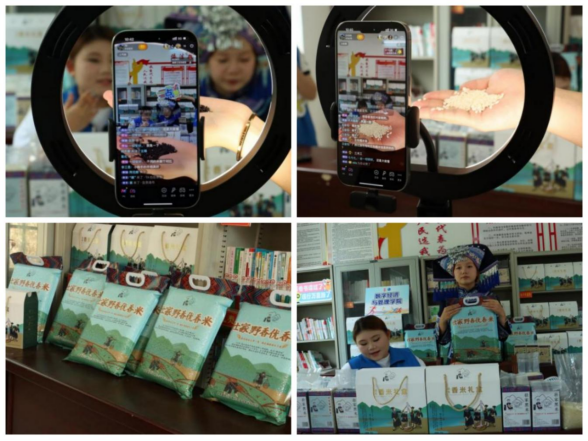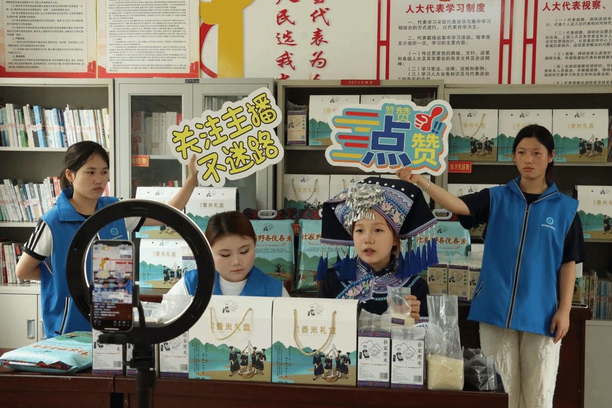 服务团充分发挥专业特长,化身“新农主播”,开展助农直播带货行动,在镜头前展示板价村生态香米,从香米的生长环境、加工流程入手,融入板价村短衣壮族文化,将香米与当地饮食传统、生活智慧相联结,让板价村的生态香米鲜活地呈现在观众面前。