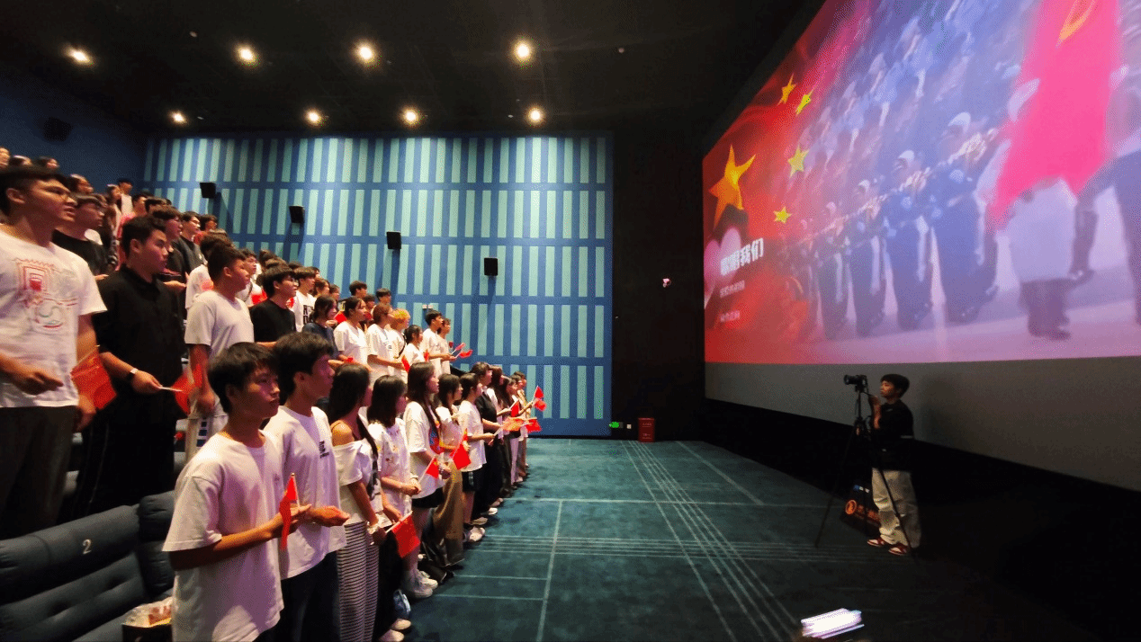 9月26日,学校主场活动同步开展。100余名校内学生代表(含各二级学院代表、校级学生组织成员、校军事国防社成员)手持小红旗集合乘车观影。观影过程中,全场肃穆,学生们屡次为影片中先烈的英勇抗争而动容;影片结束后,交流分享会围绕“历史真相的警示意义”“当代青年的国防责任”展开,学生代表踊跃发言,“作为新时代青年,我们当以国防情怀铸就担当,用实际行动守护这来之不易的和平”,校军事国防社成员的发言引发全场共鸣。
