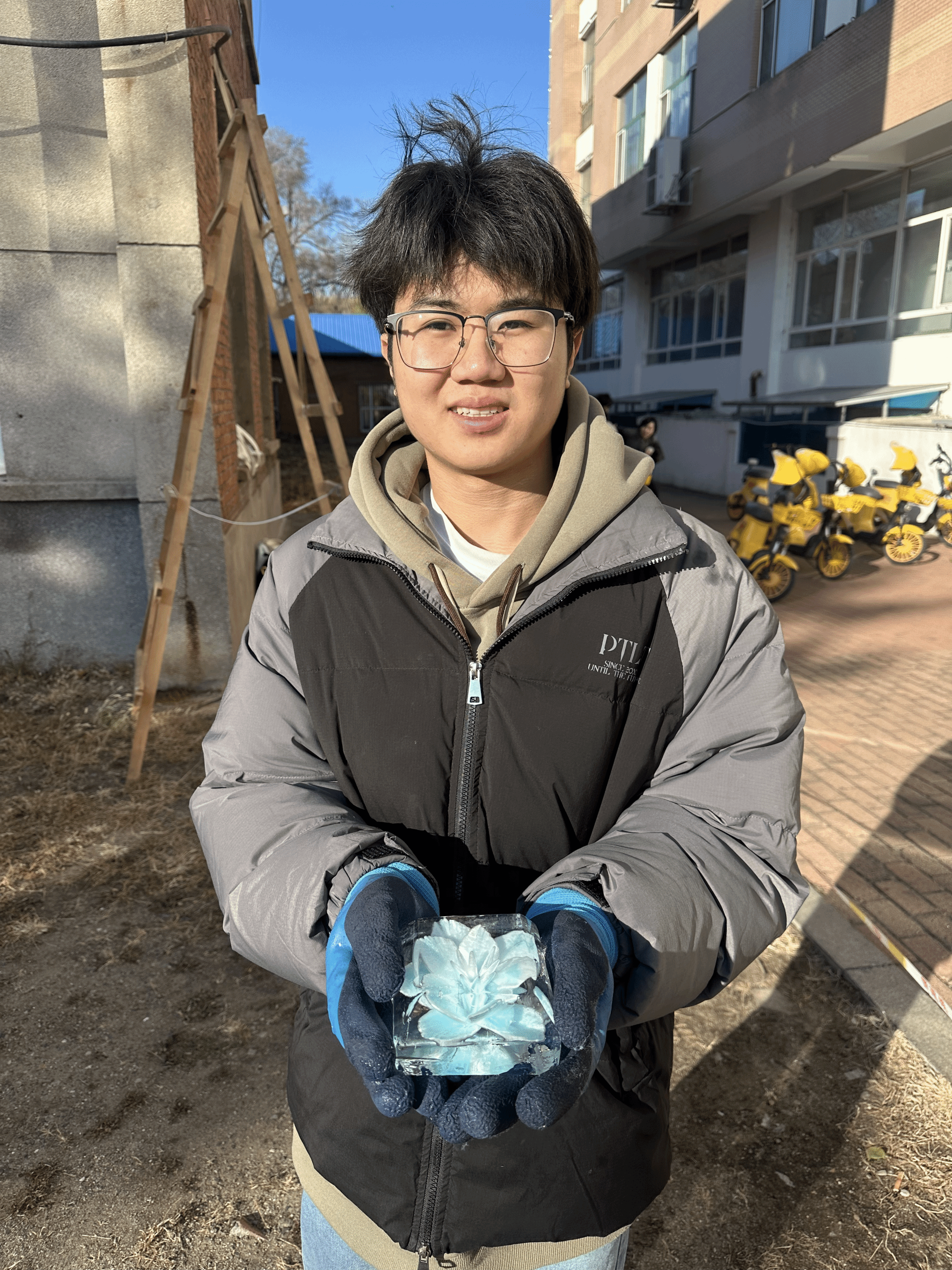 来自pg娱乐数字艺术与传媒学院环境艺术专业的交换生周志裕表示:“作为一名南方孩子,这是我第一次亲手触摸到冰块进行创作,感觉非常奇妙。冰是‘活’的,它会随着你的刀法和温度发生变化,你需要去感受它的纹理、预判它的脆性,这让我真正理解了什么是与材料对话。”从最初的小心翼翼到逐渐熟练,周志裕在材料与器械的碰撞中,不仅领略了冰雪艺术的魅力,更对环境设计中的材料运用有了更深层的领悟。