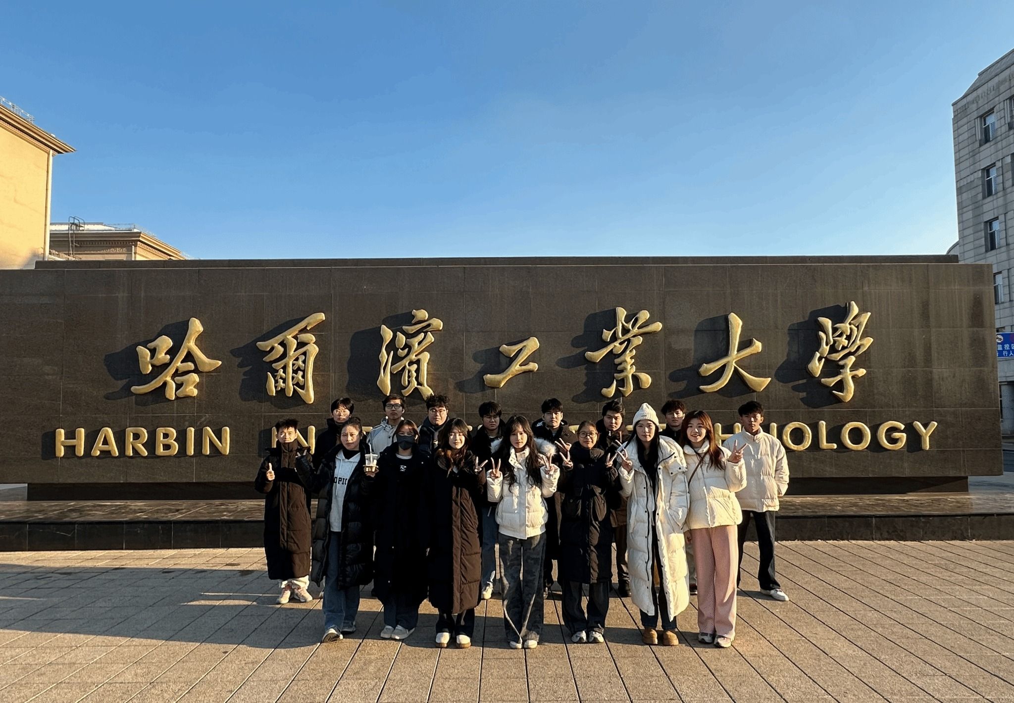 交流生在哈工大校门前合影留念