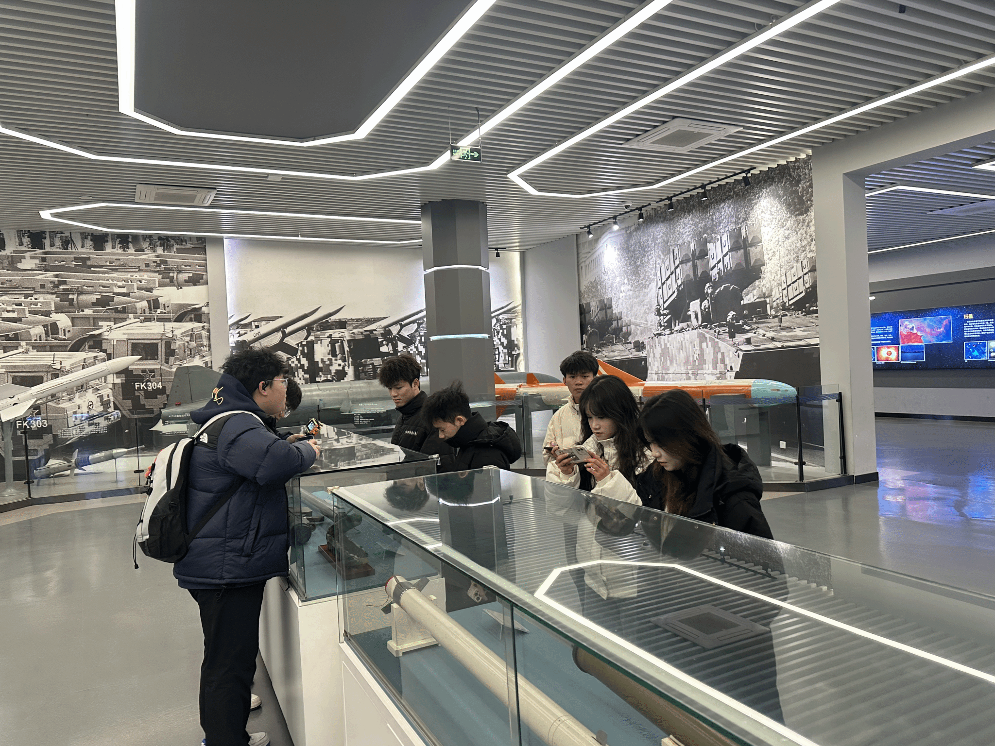 哈尔滨工业大学航天馆作为国内重要的航天主题教育基地,系统收藏了导弹、运载火箭、人造卫星、载人航天及探月工程等领域的珍贵展品。在专业讲解员的引导下,同学们系统学习了世界航天技术的发展脉络,重点观摩各类火箭发动机、返回式卫星、神舟飞船返回舱等实物展品,并通过丰富的图文资料和模型展示,了解了我国航天事业从无到有、从弱到强的发展历程。