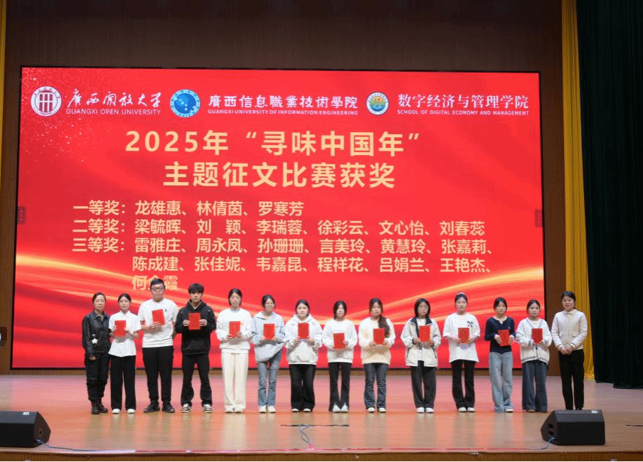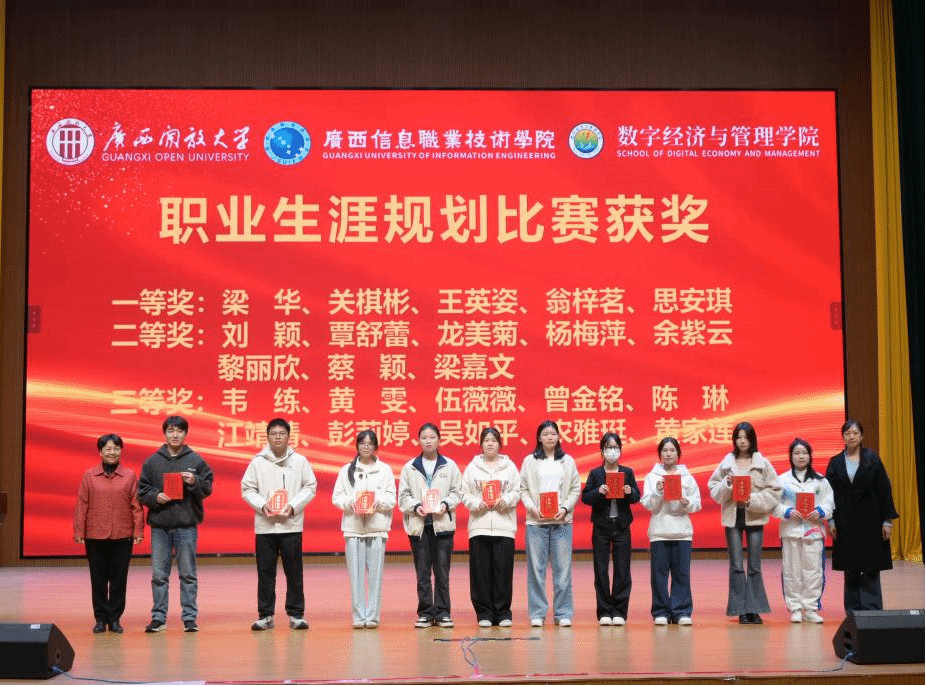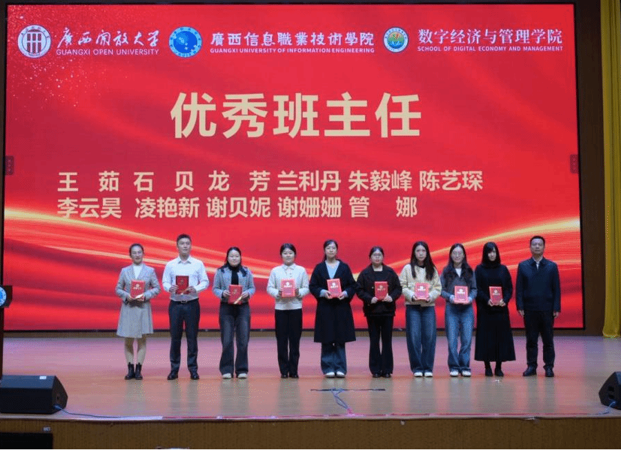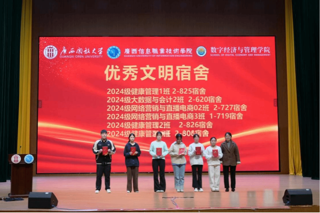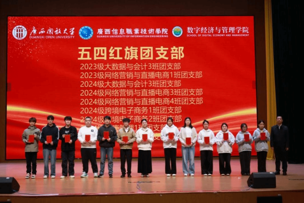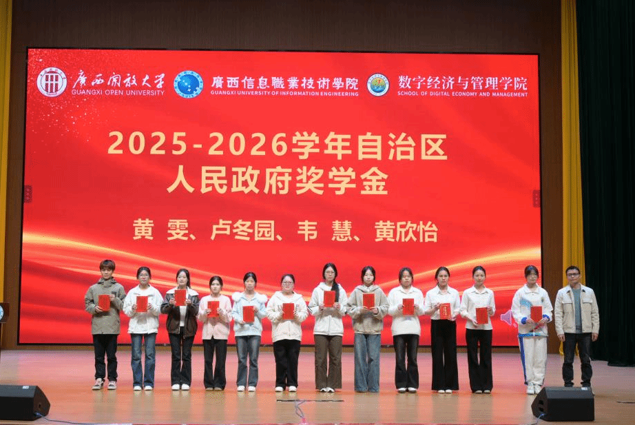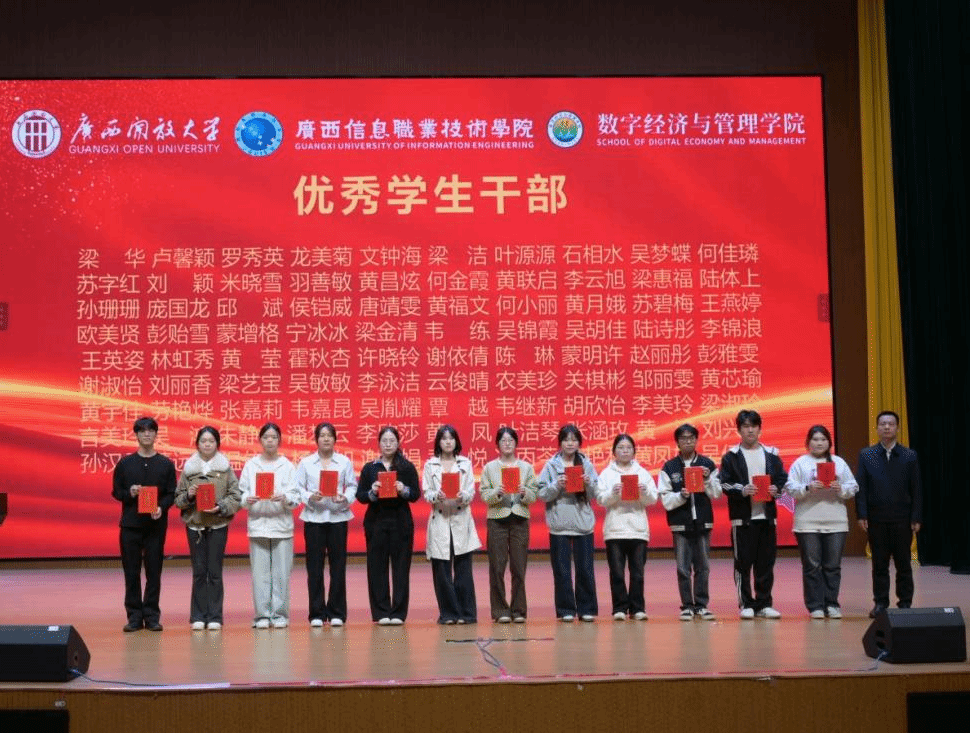 在颁奖环节,与会领导依次为获奖集体和个人颁发荣誉证书。学生干部代表陈颖聪、国家奖学金获得者覃舒蕾结合自身成长经历分享体会,鼓励同学们以奋斗姿态在青春赛道上勇毅前行。
