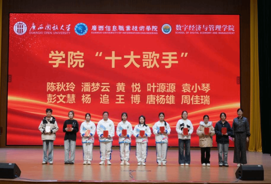 校团委书记、学生工作部副部长洪姣龙颁发“十大歌手”荣誉证书