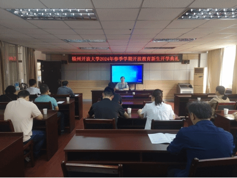 梧州开放大学 陈思维报道 4月27日上午,梧州开放大学举行2024年春季学期新生开学典礼。学校党总支书记、校长聂振传、教务处、新生班主任、2024年春季学期新生参加典礼。