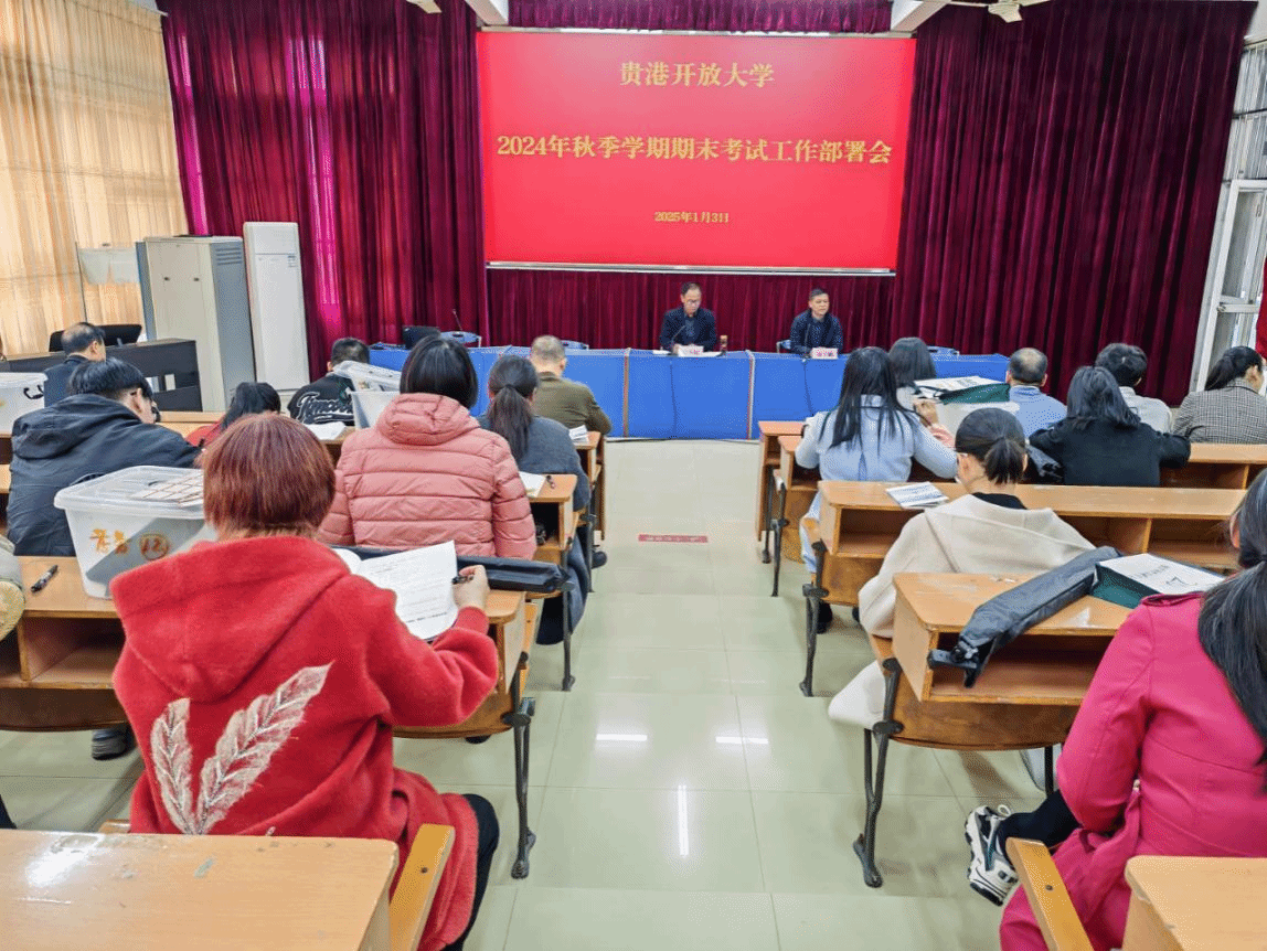 pg娱乐高度重视此次考试工作,考前组织召开了考试工作部署会和考务培训会。会上,贵港开放大学党组书记、校长管升起同志传达了2024年秋季学期国家开放大学期末考试工作部署会、pg娱乐电子游戏官网入口2024年秋季学期开放教育期末考试考务视频会会议精神,并对本次考试工作提出了要求,要统一思想认识,高度重视期末考试工作。要强化考试组织,筑牢考试安全防线。要严格考风考纪,维护考试公平。要强化工作纪律,确保有序高效。贵港开放大学教务处副处长李岸对监考员进行了培训。