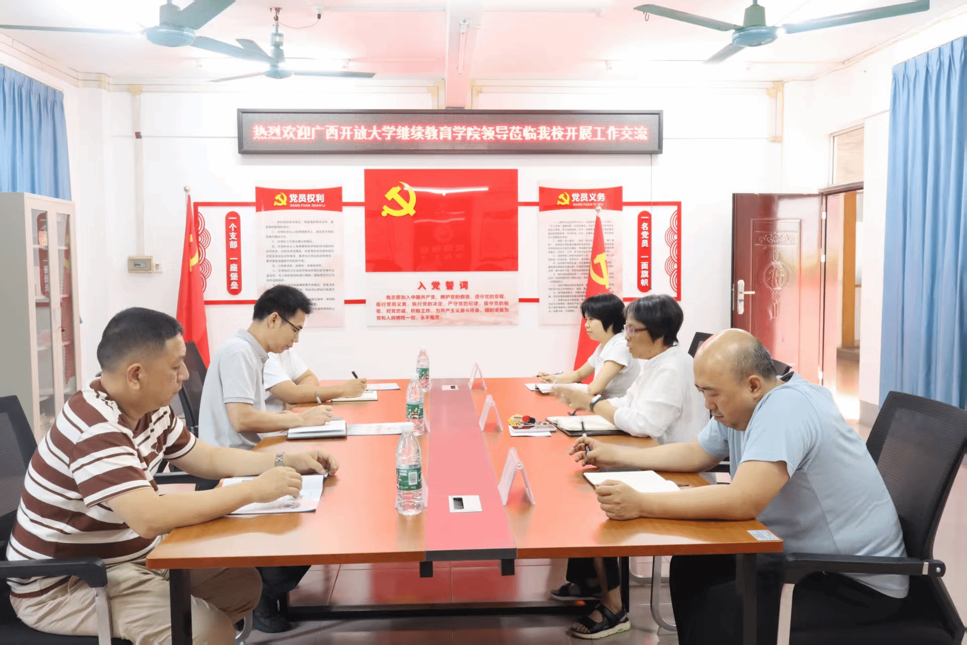梧州开放大学 黎文华 报道 5月22日下午,pg娱乐电子游戏官网入口继续教育学院副院长黎富贵一行三人到梧州开放大学开展村“两委”中专学历提升项目、高等学历继续教育、同等学力申硕项目合作和经验交流。
