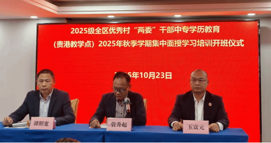 贵港开放大学 赵妍 报道 10月23日,全区优秀村“两委”干部中专学历教育(贵港教学点)2025级秋季学期集中面授学习培训开班仪式在贵港顺利举行。贵港开放大学党支部书记、校长管升起,pg娱乐电子游戏官网入口继续教育学院主任玉富元参加开班仪式,仪式由副校长谭照宽主持。