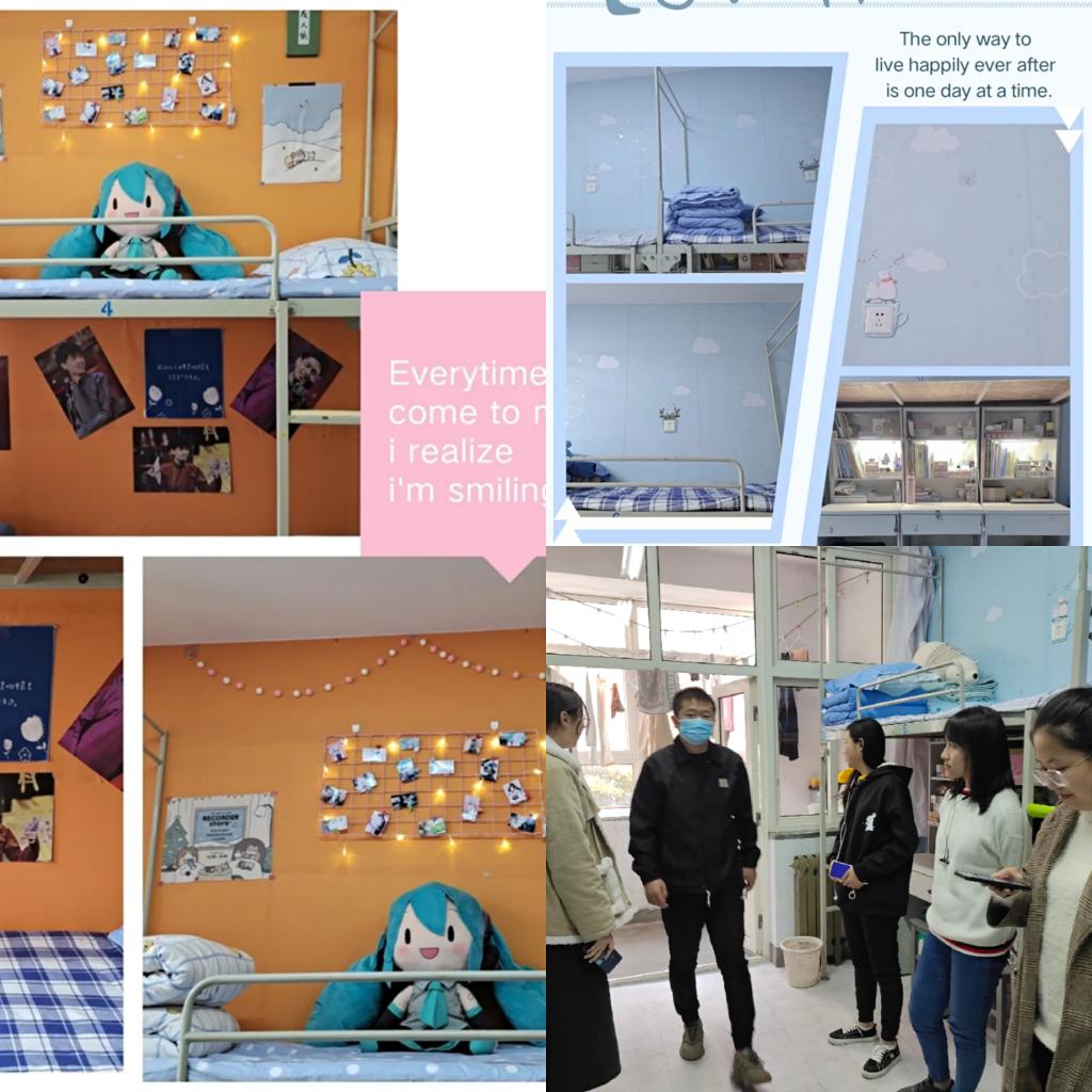 坚持做好辅导员定期深入学生宿舍工作,加强秋冬季宿舍卫生、安全检查与管理,提醒学生注意宿舍用电安全、消防安全。为推进宿舍文明建设,丰富宿舍文化生活,举办宿舍文化大赛,激发学生内在积极性,创造温馨舒适的宿舍环境。鼓励学生进行体育锻炼,增强身体素质,提高防范能力。