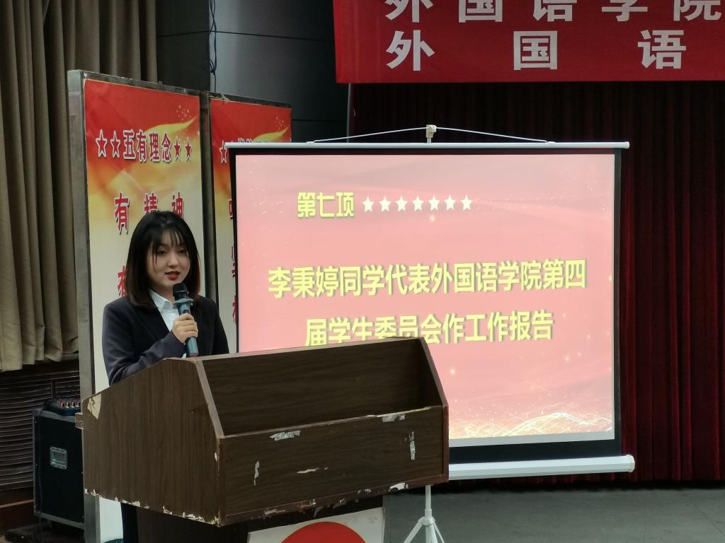 李秉婷代表beat365英国官方网站第四届学生委员会作工作报告。