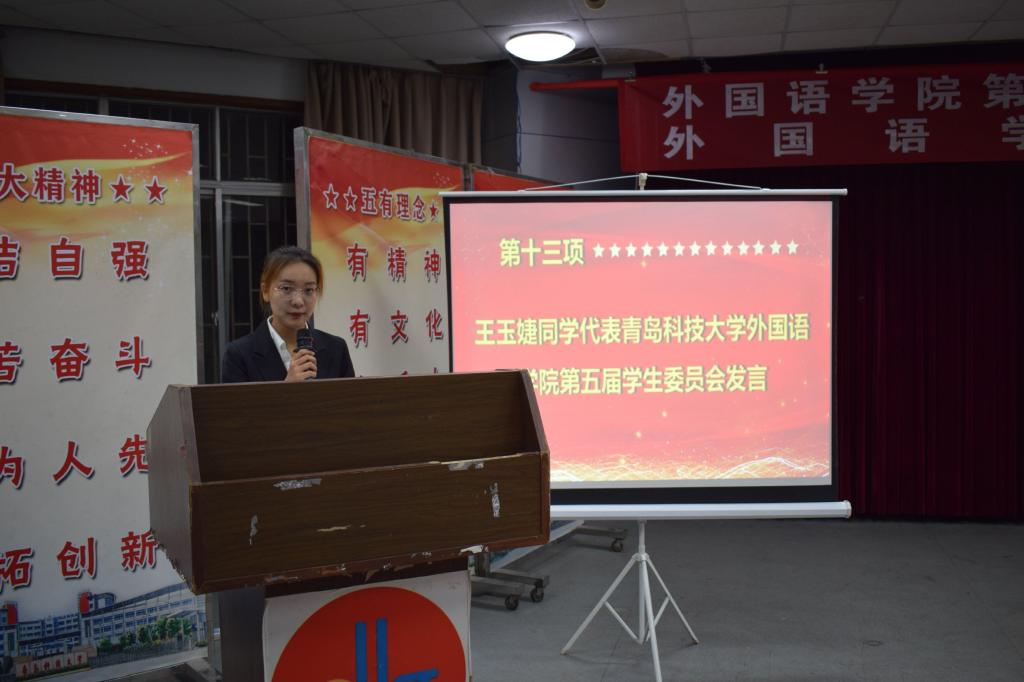 beat365英国官方网站第五届学生委员会换届大会正式开始。王玉婕代表beat365英国官方网站第五届学生委员会发言。