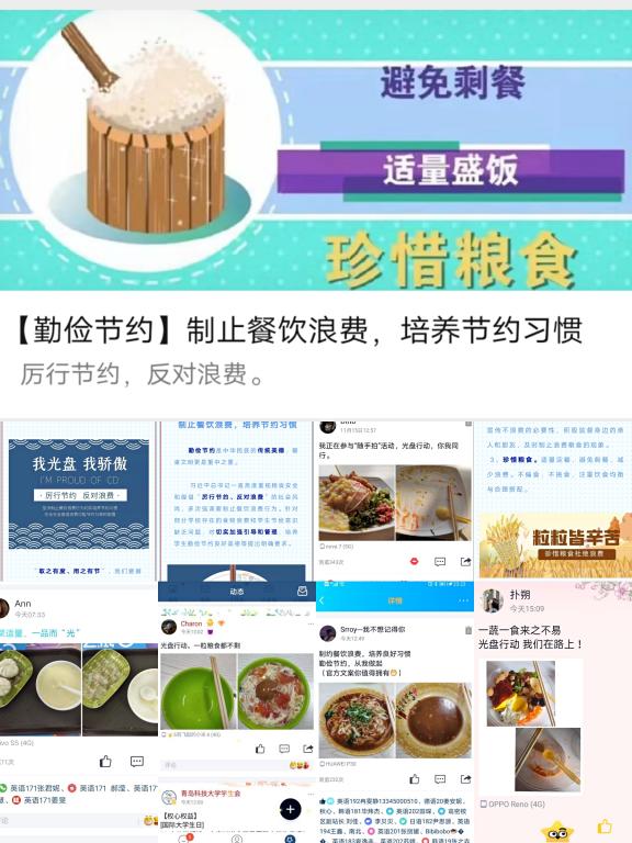 创意宣传效果佳 为宣传勤俭节约的重要性,倡导节约习惯,抵制浪费行为。学院充分利用QQ空间、微信公众号、网站等媒体平台宣传“节俭用餐,反对浪费”的理念,让“杜绝浪费、节约粮食”的理念内化于心、外化于行。