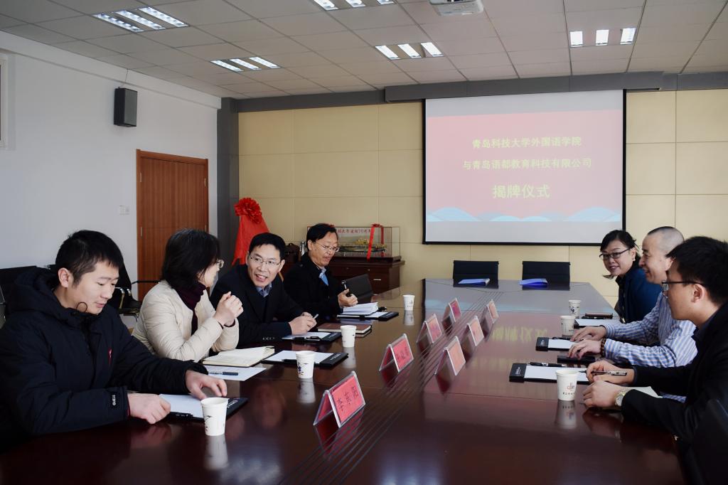 青岛语都教育科技有限公司董事长刘焕强介绍了公司的现状、发展规划和目标,他表示青岛语都教育科技有限公司具有完善的人员培养机制和广阔的发展前景,希望双方能够探索开展灵活多样的院企合作,充分依托大学生创新创业实习基地建设,为学生就业、成长成才提供一条便捷有效的途径,期待双方人才培养合作早结硕果。