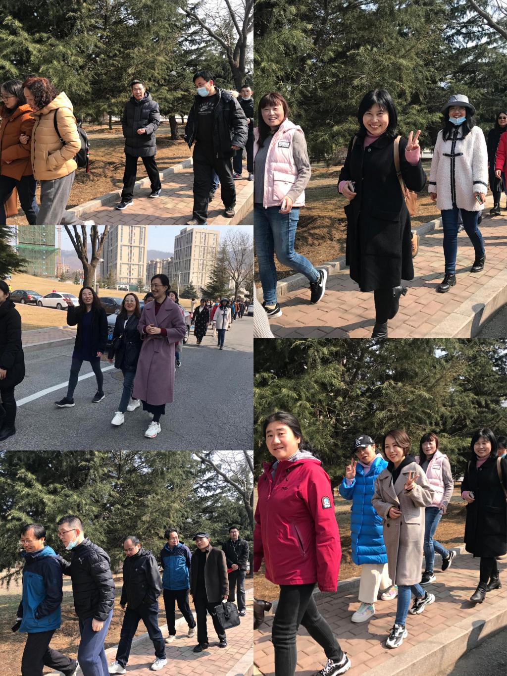 健步行过程中,教师们沐浴着春日的暖阳,个个精神饱满,迈着矫健的步伐行走在校园中,展现出外院老师们积极乐观、健康向上的精神面貌。