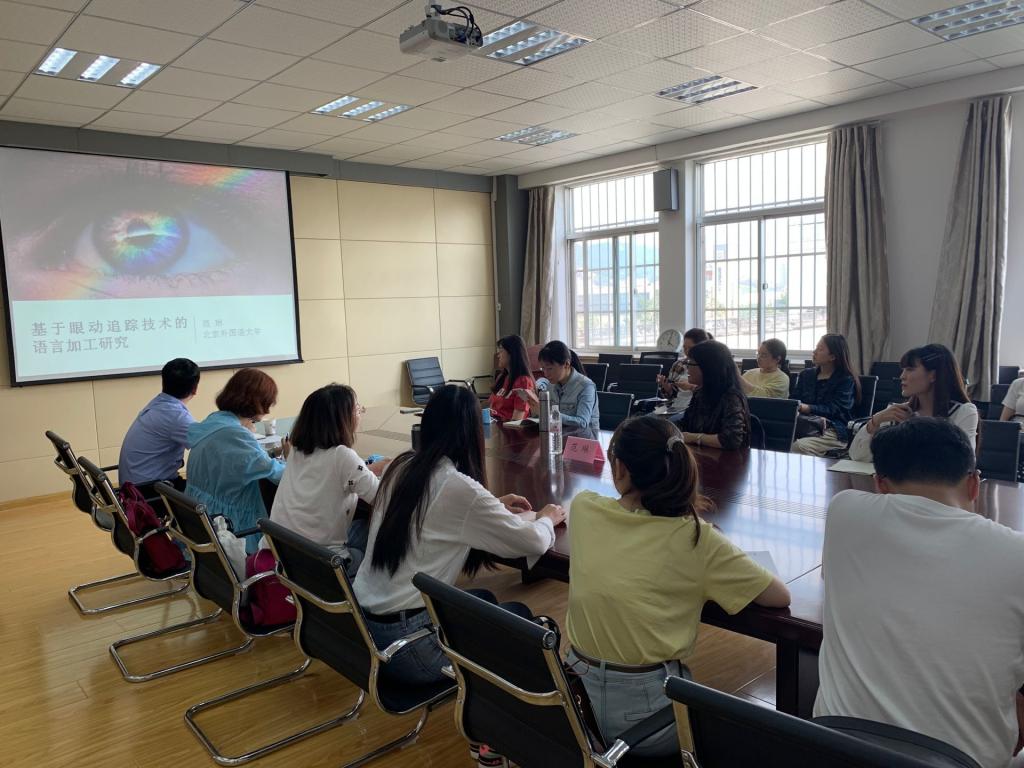 6月7日下午,北京外国语大学博士生导师范琳教授应邀来我院进行学术交流,在外语楼517会议室做了题为《基于眼动技术的语言加工研究》的学术讲座。讲座由beat365英国官方网站副院长刘靖主持,beat365英国官方网站部分教师和研究生参加了此次讲座。