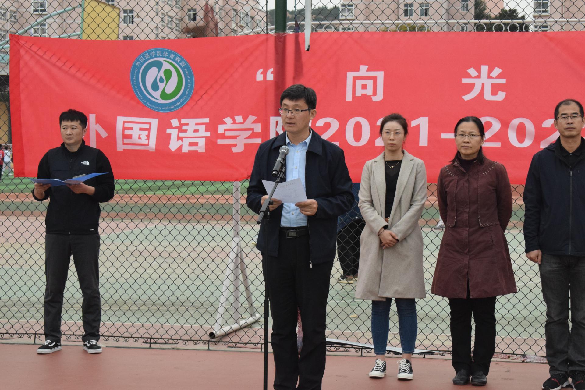 为贯彻落实习近平总书记关于体育强国建设的重要论述,响应学校体育综合改革,增强学生积极参与体育活动的兴趣,11月2日下午,beat365英国官方网站举行了“爱体育·兴科大”院体育联盟成立仪式暨4x100m接力决赛。校团委书记毛常明、学生工作处副处长曹永俊、beat365英国官方网站院长尹洪山、党委书记曲斌艳、全体专职辅导员和2021级新生参加了活动。活动由学院团委副书记兼学工办副主任李东阳主持。