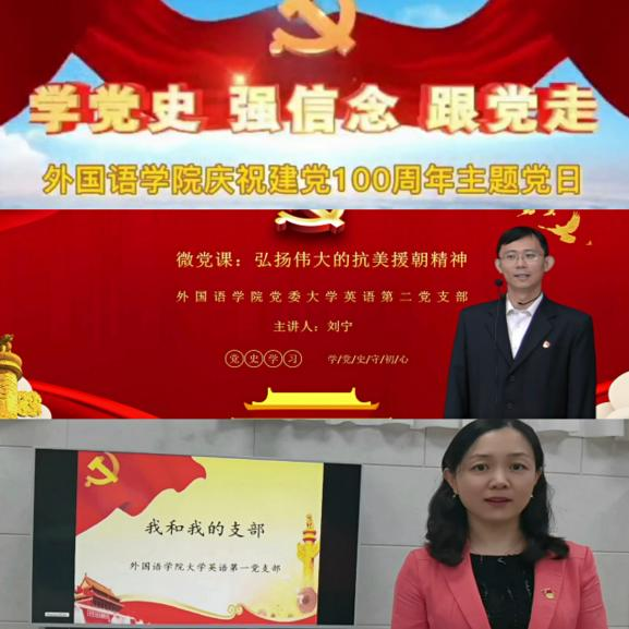 对与会党员集体观看了“感悟百年辉煌史 砥砺奋进新征程”优秀党日活动微视频、大学英语第二教研室党支部刘宁老师的“弘扬伟大的抗美援朝精神”微党课、大学英语第一教室党支部蒋晓青老师的“我和我的支部”微视频。