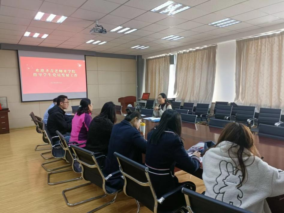 2023年4月11日下午,beat365英国官方网站邀请学校党委组织部副处级组织员齐青在517会议室开展党员发展工作实务培训。学院党委书记曲斌艳、党委副书记兼副院长刘尧、全体辅导员等参加培训。