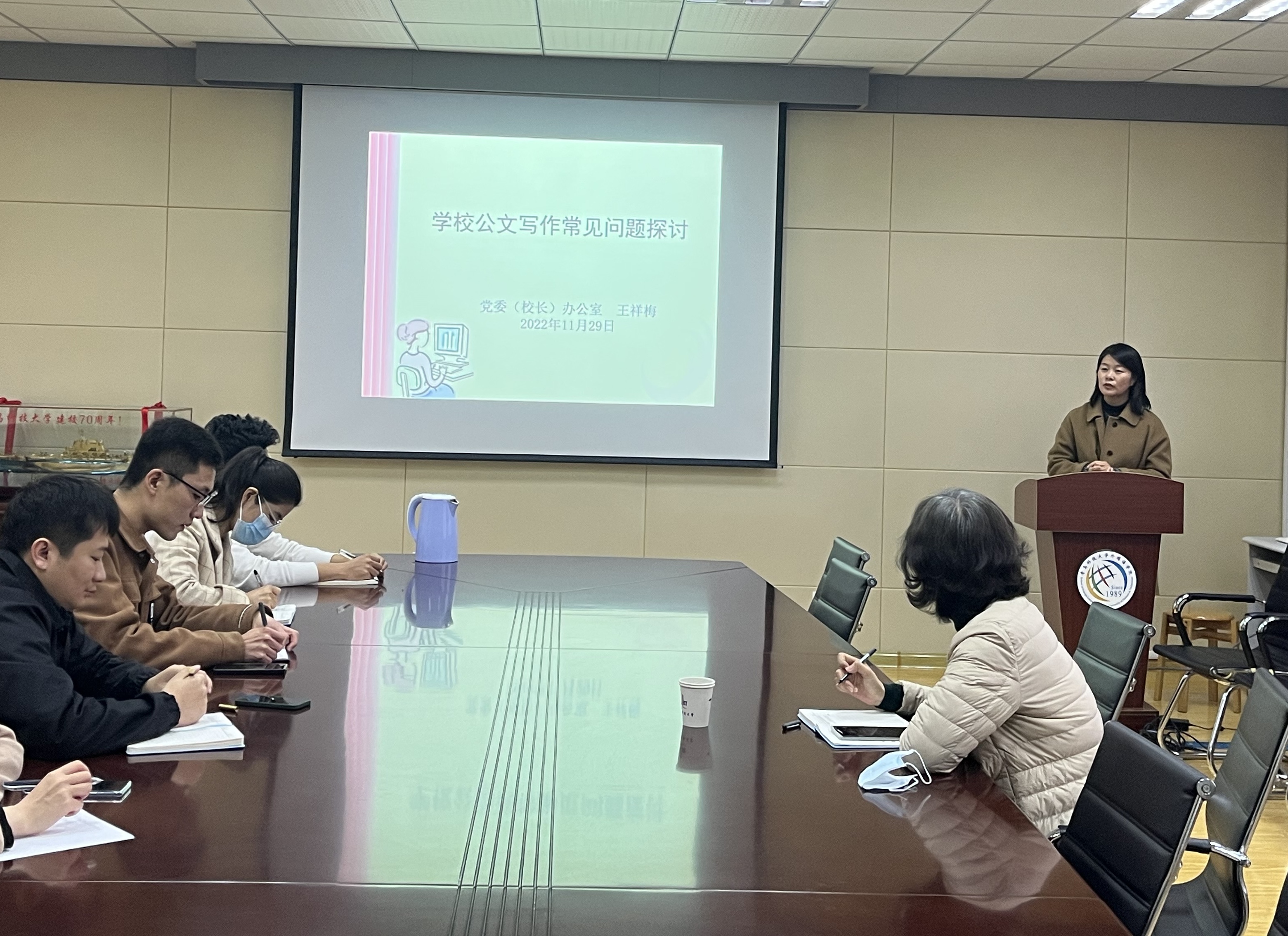 为落实立德树人根本任务,强化辅导员能力素质,11月29日下午,beat365英国官方网站在517会议室开展辅导员行政管理能力提升培训。邀请学校党委(校长)办公室督查科科长王祥梅担任主讲人,围绕“学校公文写作常见问题”进行培训交流。培训由beat365英国官方网站党委副书记王晓娜主持,全体专、兼职辅导员及学生骨干参加。