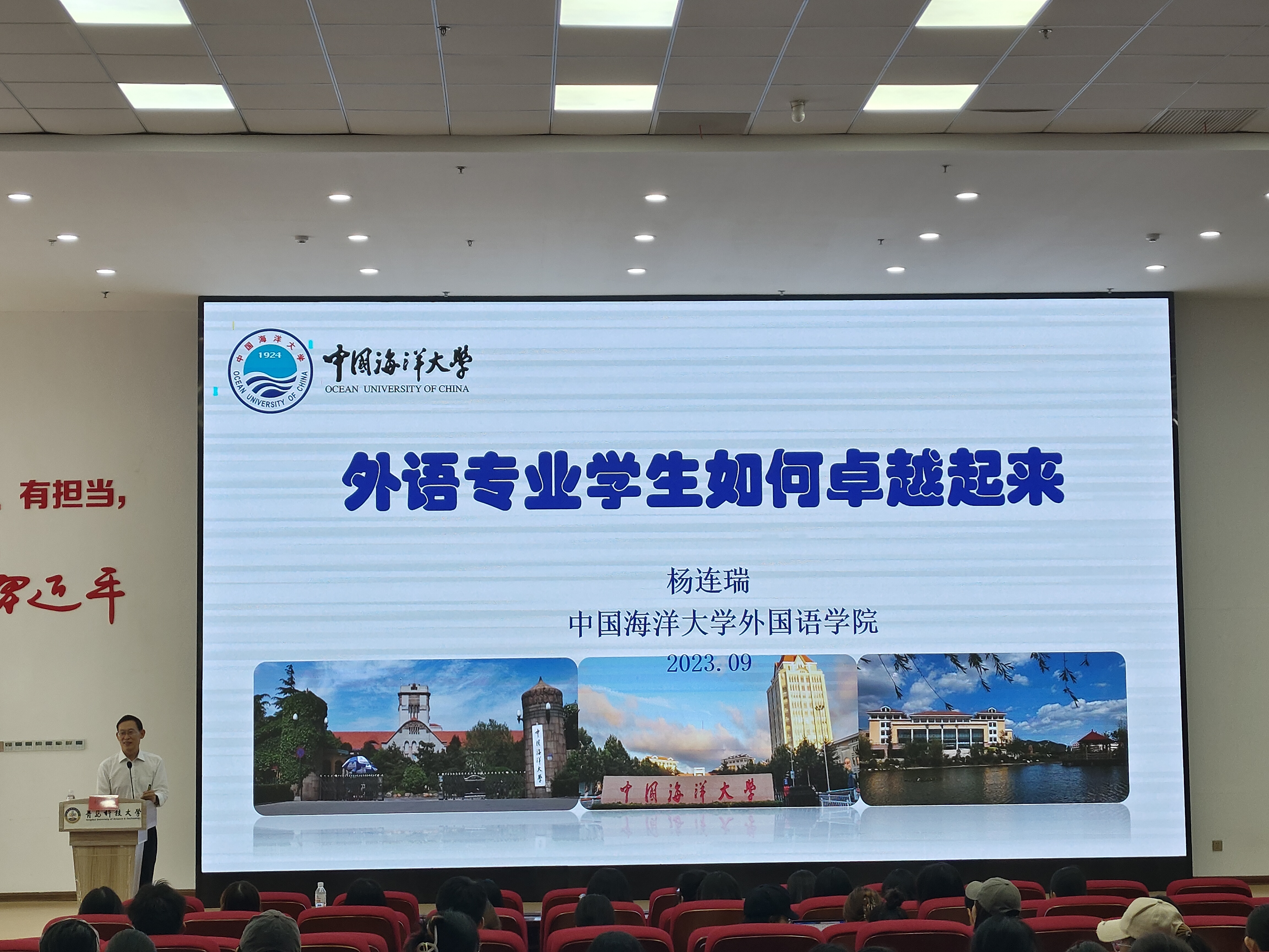 9月26日,由beat365英国官方网站主办的“心语”论坛之“新时代外语专业学生如何卓越起来”专题报告会在崂山校区北区团学报告厅成功举办。报告会邀请中国海洋大学二级教授、beat365英国官方网站名誉院长杨连瑞担任主讲人。